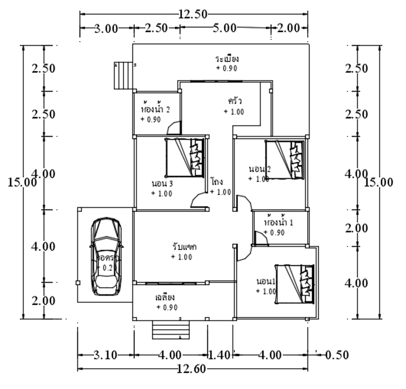 Minimalni zahtjevi za parcelu su 15,5 metara x 20 metara (ukupna površina parcele 310 četvornih metara). To znači da je dopuštenje ili odmak na svakoj strani 1,5 metara, sprijeda 3 metra, a straga na 2 metra. Shema boja za ovu kuću je kombinacija krem zidova i zidova pregače sive boje na povišenoj razini. Maroon boja za naglašene zidove s oblogama i za stupove. Dizajn krova je četverokrilni krov sa sivim metalnim krovištem dugog raspona. Jednostavan, ali prekrasan koncept povišene kuće definira izglede dizajnera. Njegovom raznolikom idejom napravljen je ovaj koncept.