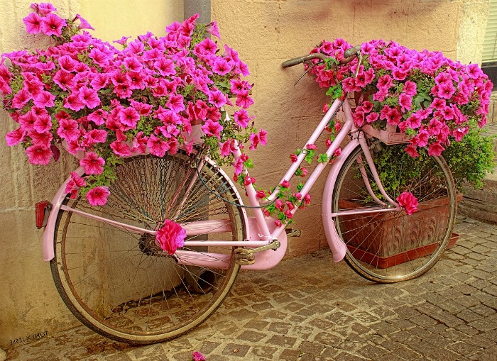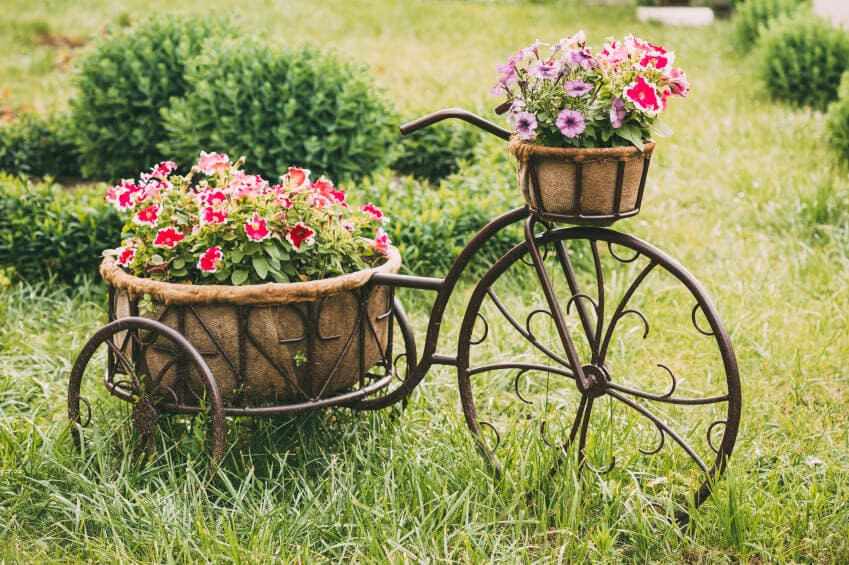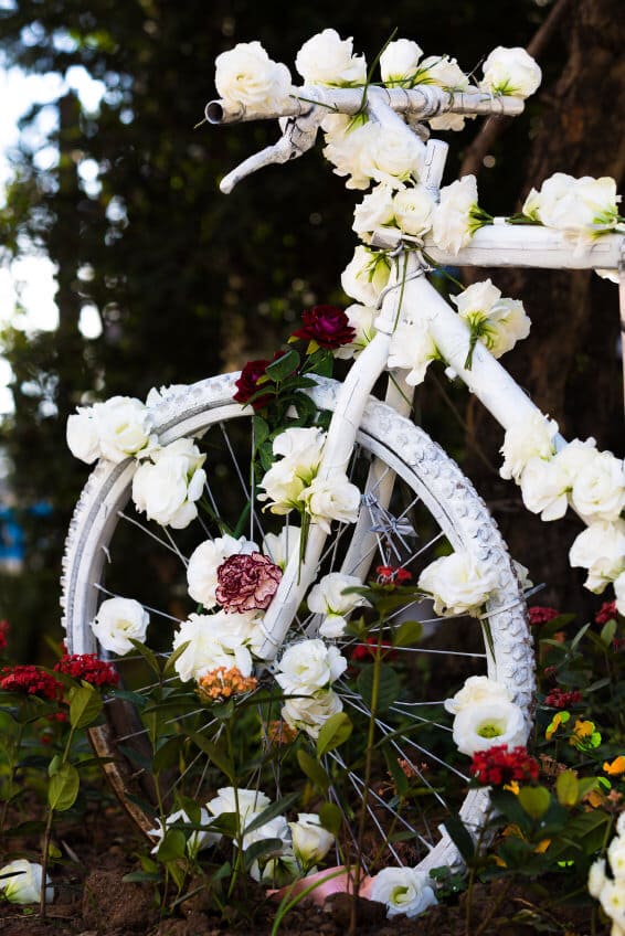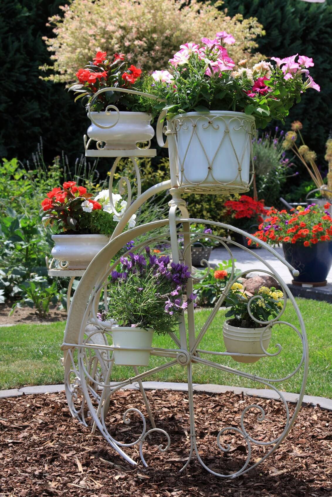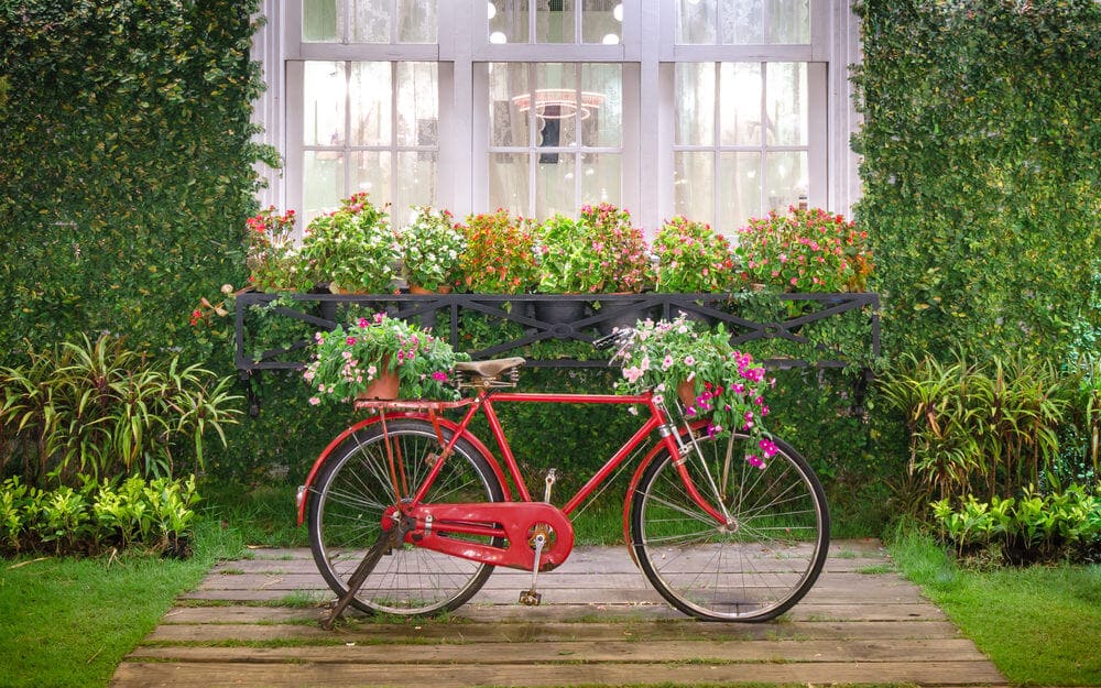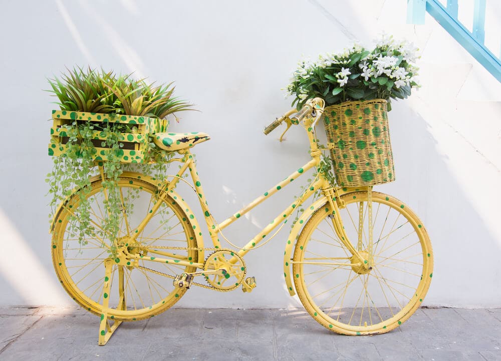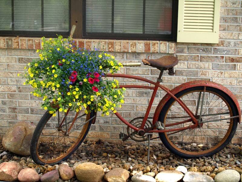 Starom biciklu možete dati novi sjaj i namenu jednostavnim čišćenjem i bojenjem. Bicikl ne mora da bude dobro očuvan, čak ne mora imati ni točkove. Osvežite ga, pričvrstite za zemlju u bašti i koristite ga kao vintage žardinjeru u koju ćete posaditi raznobojno mirisno cveće.